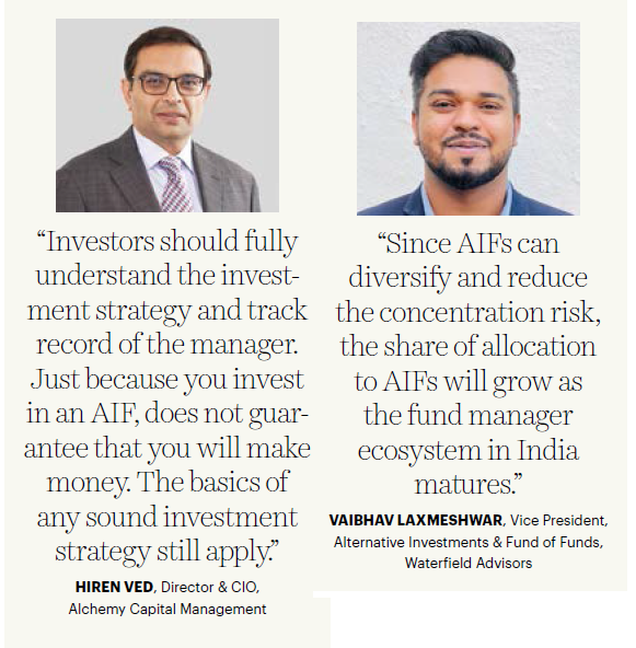 Industry insiders expects share of allocation towards AIFs to grow further. “Since AIFs can diversify and reduce the concentration risk, the share of allocation to AIFs will grow as the fund manager ecosystem in India matures,” says Laxmeshwar.