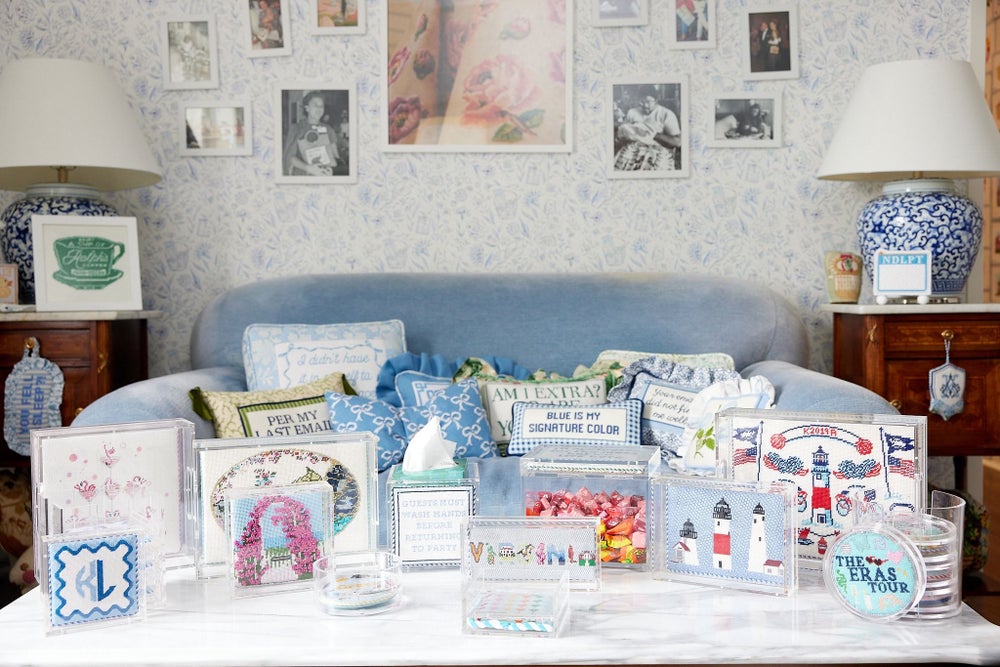 Today, we have found partners who believe in our growth and are building with us. When we launched our acrylic line in 2022, there was so much chatter online that it wasn’t innovative or unique, but today we hold a patent for the design, and it’s one of our bestselling lines. We also take a slightly smaller wholesale margin than the industry standard because I believe in making needlepoint accessible. Our wholesale partners were initially adamant that it wouldn’t be successful, but it has proven otherwise. I developed a thick skin while blogging and learned to shut out the noise, which has followed me into Penny Linn as we continue to shake up the industry.
