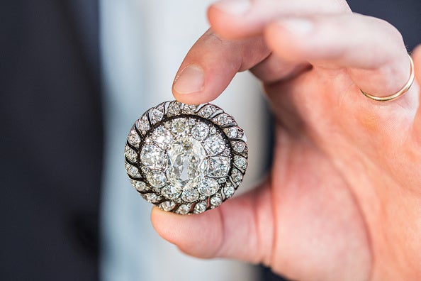 A diamond brooch that Napoleon left behind during his retreat after the Battle of Waterloo sold for more than 3.5 million Swiss francs (about $4.4 million) at Sotheby’s Geneva auction Wednesday. The piece features an oval diamond over 13 carats, surrounded by smaller cut diamonds, and was once part of Napoleon’s personal possessions left behind in a carriage stuck in muddy roads during his flight. The brooch later entered the collection of the Prussian royal House of Hohenzollern for over two centuries.